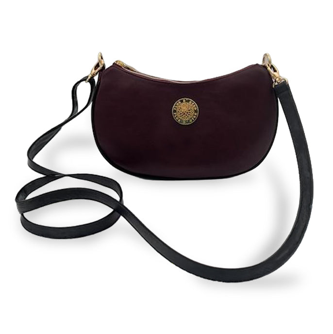 Refined, modern, and effortlessly chic — this Flor d’ Otro crescent crossbody is crafted from smooth, premium maroon leather that delivers a rich, sophisticated look. The minimalist silhouette curves gently for a sleek, feminine shape, making it the perfect everyday statement piece.